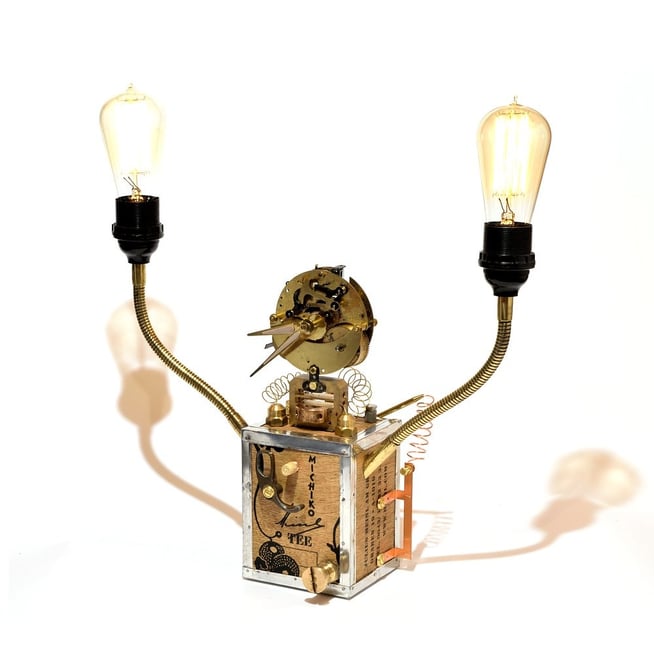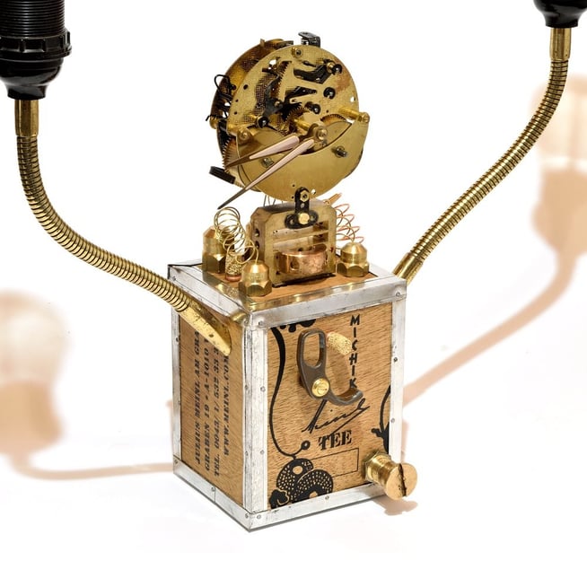 Das schöne Uhrwerk von "HERMLE & Söhne" läuft mit dem berühmten "Schwebegang von Hugo Hettich", einer speziellen Schwebegang-Unruh, welche fantastisch aussieht, wenn sie läuft. Auf den zwei Messing-Schwanenhälsen sitzen zwei EDISON-Glühbirnen, in Serie geschaltet. Sie erzeugen ein warm-oranges Glühen und tauchen ihre Umgebung in ein romantisches Licht.