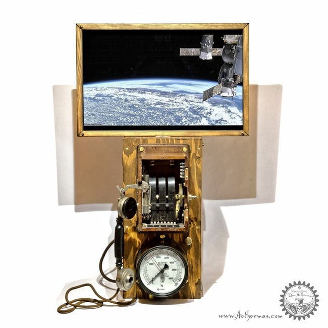 Möglich wird das Ganze durch ein eingebautes altes Laptop mit abgebrochenem Bildschirm und einer entsprechenden Internetverbindung. Die Video-Daten werden von www.dlr.de abgerufen. Hier der Link zur ISS Webcam.