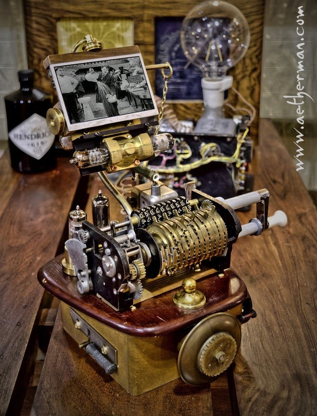 Gerade habe ich meinen neusten retrofuturistischen Artefakt fertiggestellt. Es handelt sich dabei um ein aussergewöhnliches Videoabspielgerät im viktorianischen Steampunk Stil.