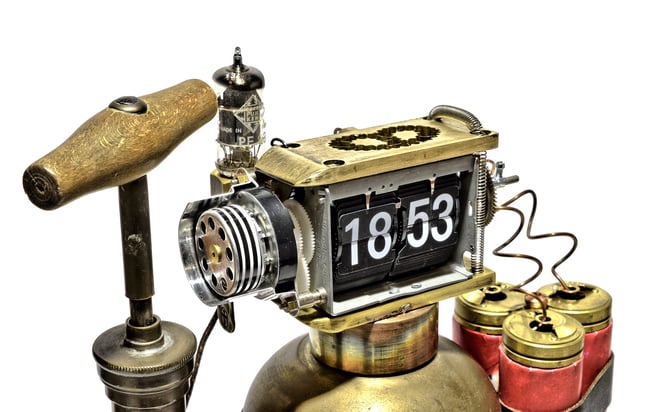 Gestern wurde mein neuster Artefakt fertig. Imspiriert wurde ich vom Film "Wild Wild West" mit Will Smith. Den Messing-Sprühbehälter wollte ich schon seit längerer Zeit für eine Sprengsatz-Attrappe benutzen. Als ich dann per Zufall eine defekte Flipclock bekam war schnell klar, was ich daraus kreieren werde. Die Uhr war schnell repariert und die verklemmten Zahnräder liefen wieder einwandfrei. Das Reultat ist ein sehr realistisch wirkender Sprengsatz. Die Dynamitstangen sind unten bewusst offen gehalten - man weiss ja nie, ob man einmal in eine Kontrolle kommt.