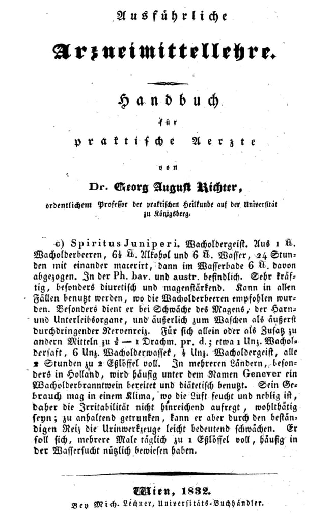 Ich habe einen alten Buchtext aus dem Jahr 1832 gefunden, in dem die Herstellung dieses Zaubermittels beschrieben ist. Ob die Flasche auch so alt ist wie das Buch - das weiss man nicht...