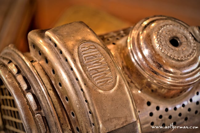 Ein kleiner Bluetooth Musikverstärker, aufgebaut auf einer antiken Motorrad-Lampe aus dem Hause RIEMANN aus dem Jahre 1910.