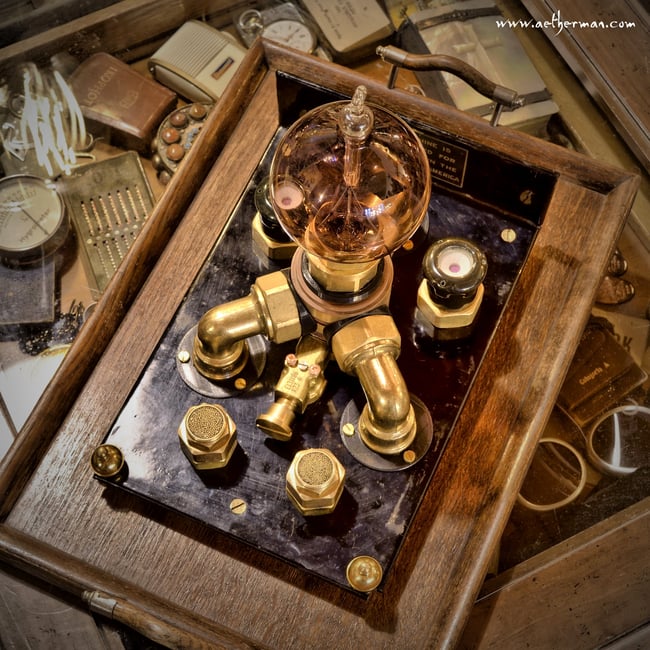 Bei Sonneneinstrahlung dreht sich die Lichtmühle, auch Radiometer genannt, in der Glaskugel. Erfunden wurde diese von Sir William Crookes im Jahr 1873.