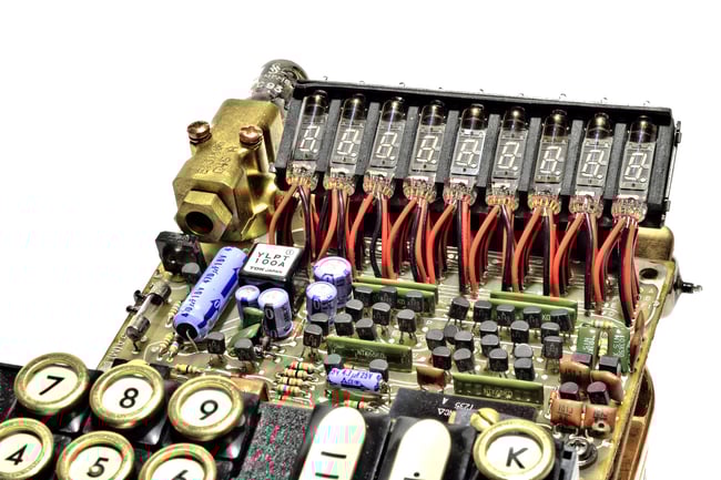 Dieser aussergewöhnliche Tischrechner basiert auf einem "OLYMPIA INTERNATIONAL CD100" aus dem Jahre 1971.