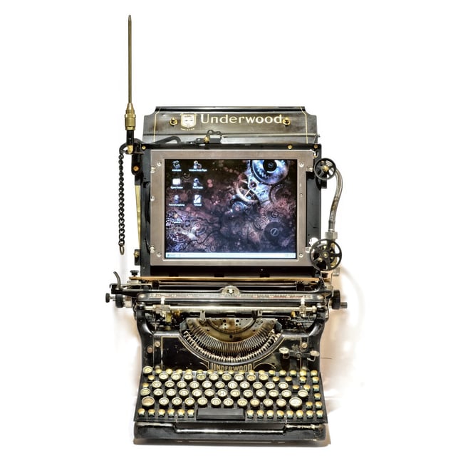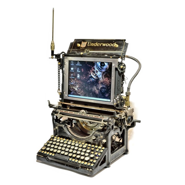 Voll funktionsfähiger PENTIUM Computer auf der Basis einer antiken UNDERWOOD Schreibmaschine aus dem Jahre 1927