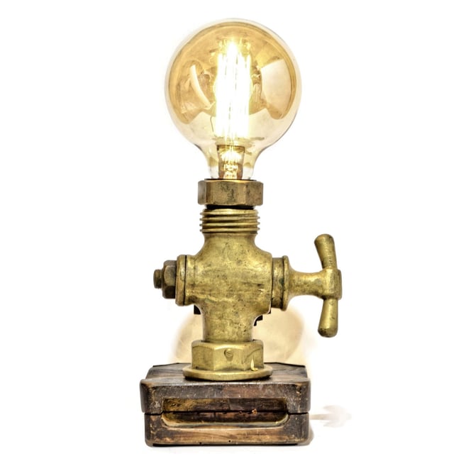 Steampunk-Lampe, aufgebaut auf antiken Teilen eines Weinguts