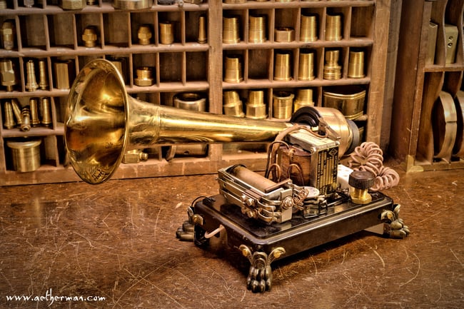 Der Schalltrichter stammt von einer alten BELLTONE 222 Fanfare